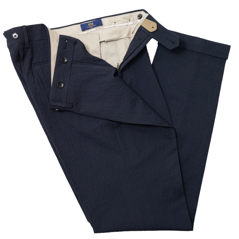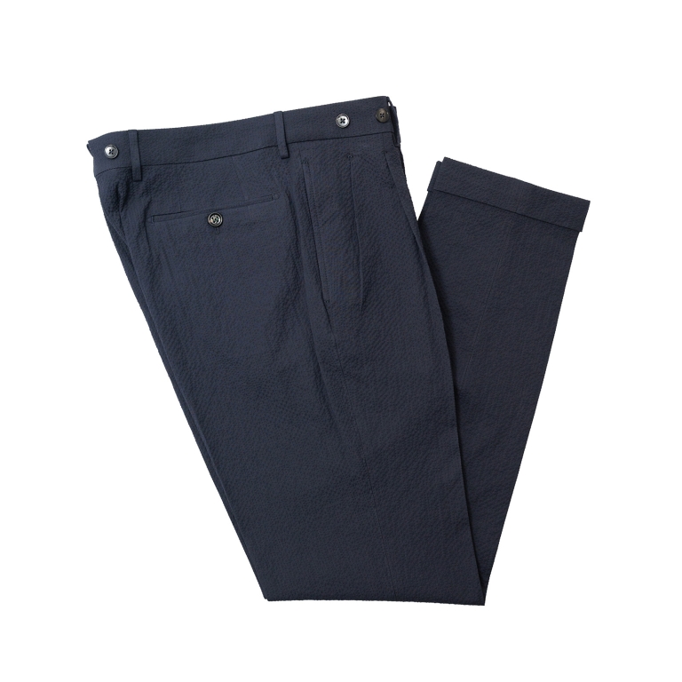 Η συλλογή μας περιλαμβάνει ένα Sartorial Ανδρικό παντελόνι με διπλές πιέτες, ζωνάρι με θυλάκια,και κουμπιά για τιράντες σε άνετη γραμμή. Μια βασική επιλογή της ανδρικής καλοκαιρινής γκαρνταρόμπας. Ενας ιδανικός συνδυασμός για το Blaser σας ή τα μονόχρωμα sport jackets σας.